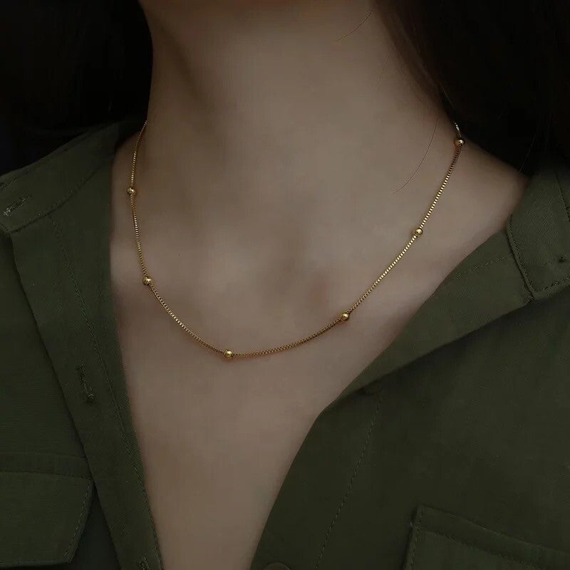Deze elegante dots ketting in goud is een must-have voor je sieradencollectie! Het subtiele design met gouden stipjesmaakt deze ketting perfect voor elke gelegenheid, of je nu een chique of casual look creëert.