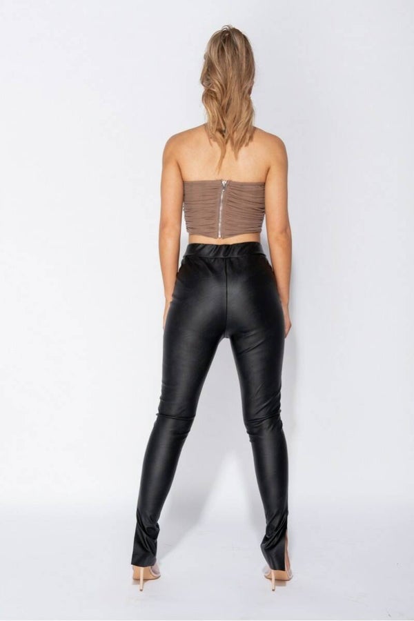Update your wardrobe this season with these pu jeggings featuring high waist & side split hem. For a night out style yours with a crop top & strappy heels.