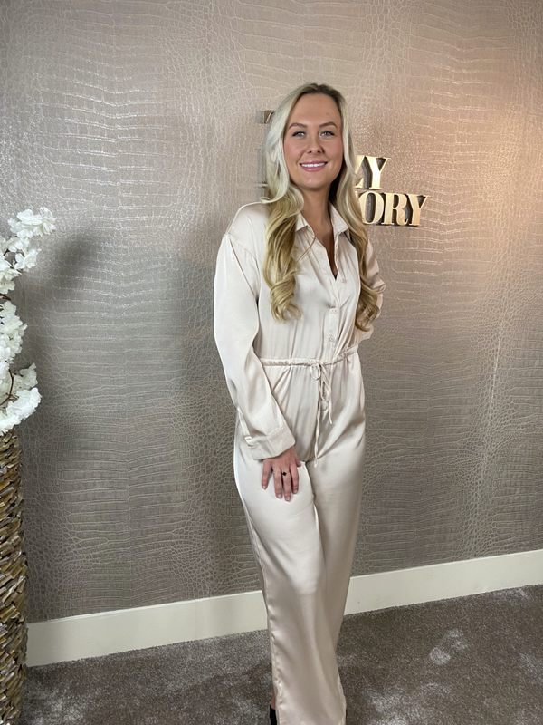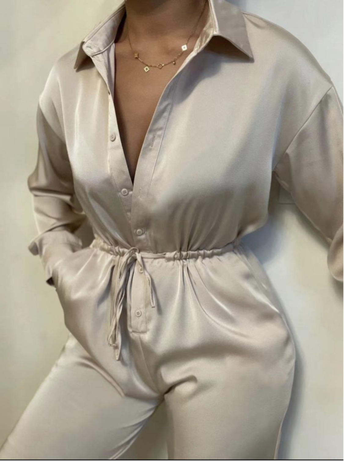 Prachtige jumpsuit! Onderkant valt als een flared pantalon model. Inclusief koort voor taille te creëren.