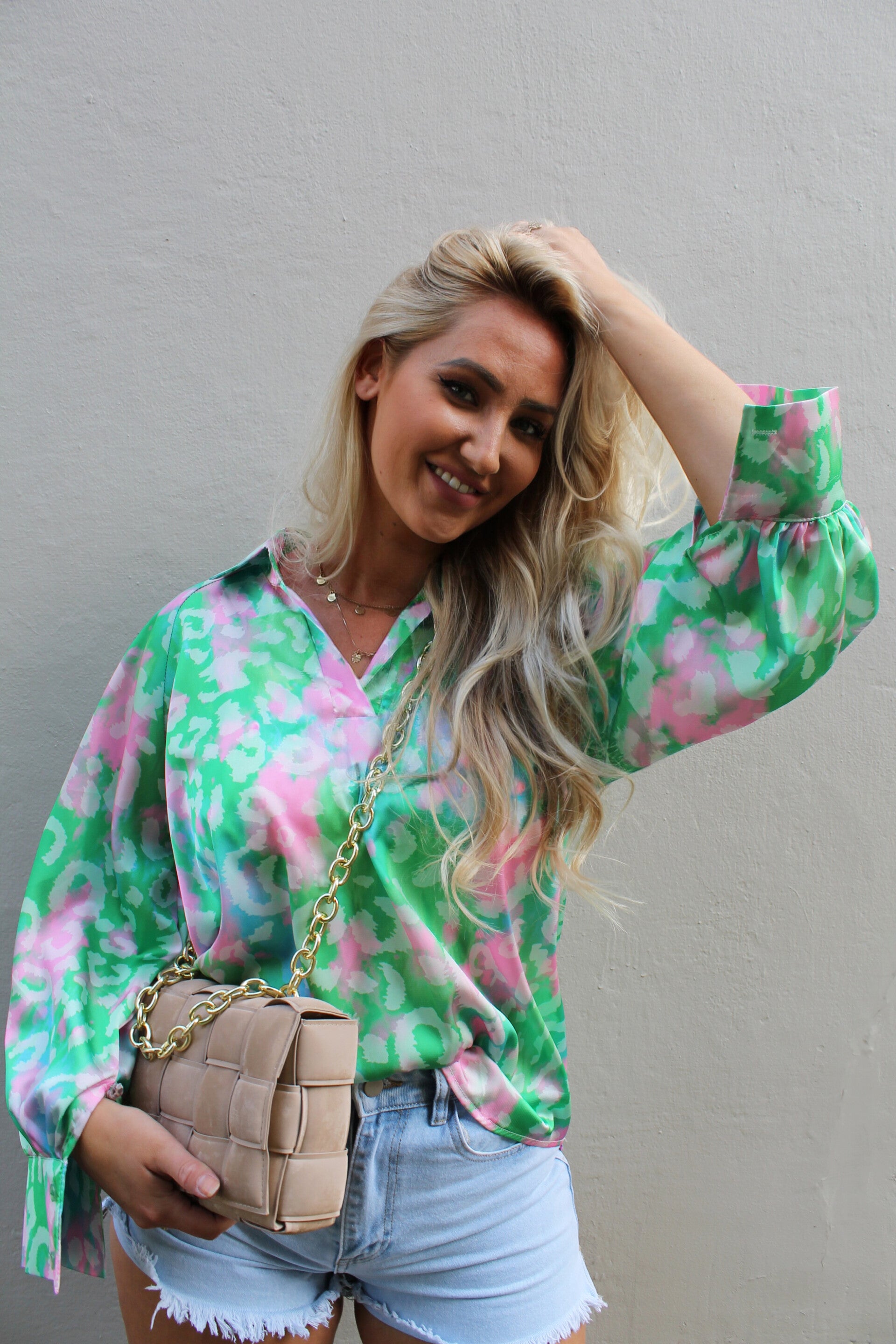- Design: Chique silky look met een leuke print en wijdere mouwen met knoopjes voor een stijlvolle en verfijnde uitstraling.