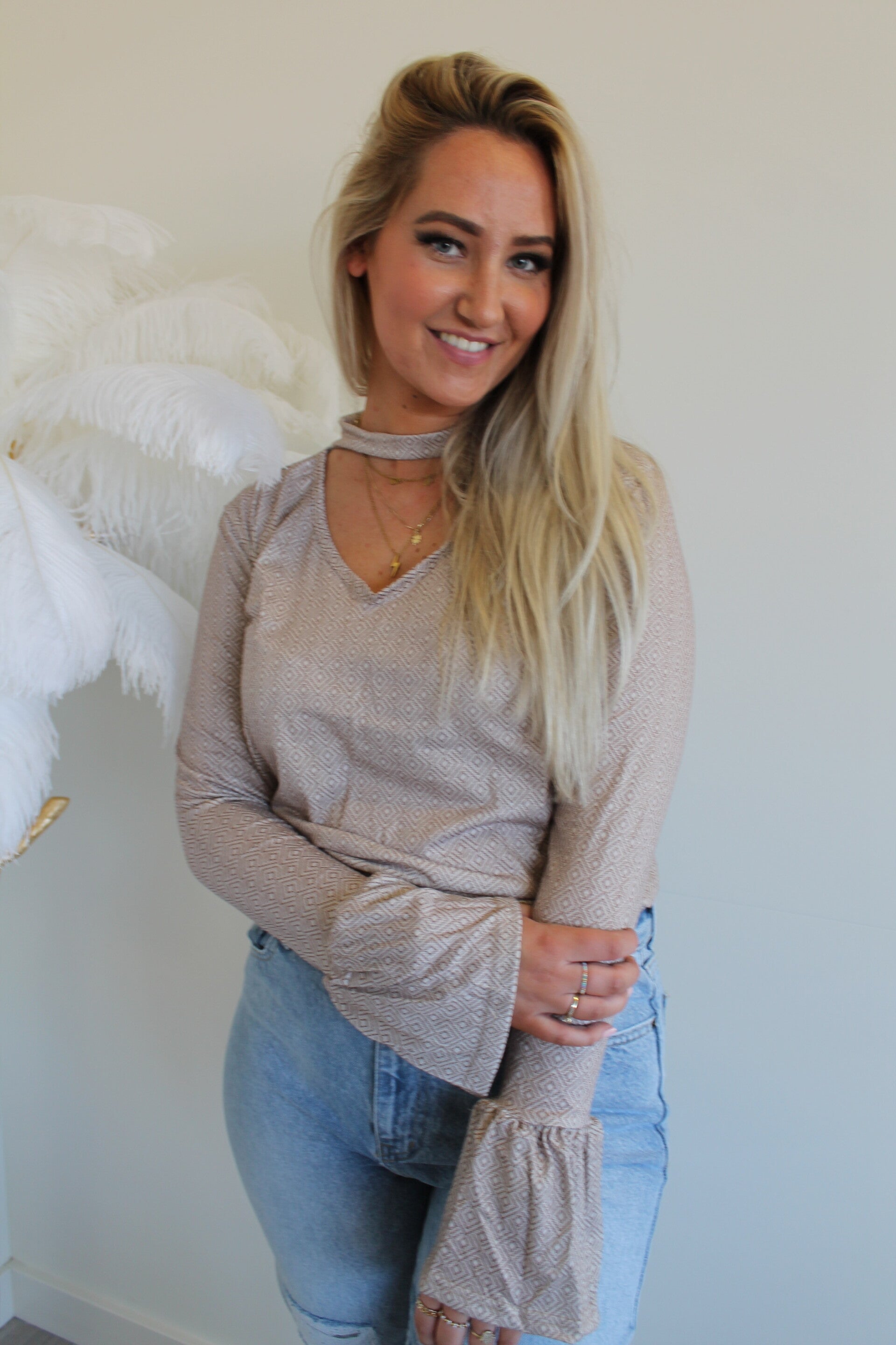 Celine Top – Prachtige top met een subtiele print en elegante uitlopende mouwen. Deze top is een geweldige keuze voor een stijlvolle en verfijnde uitstraling. Verkrijgbaar in drie kleuren voor diverse combinaties met je garderobe.