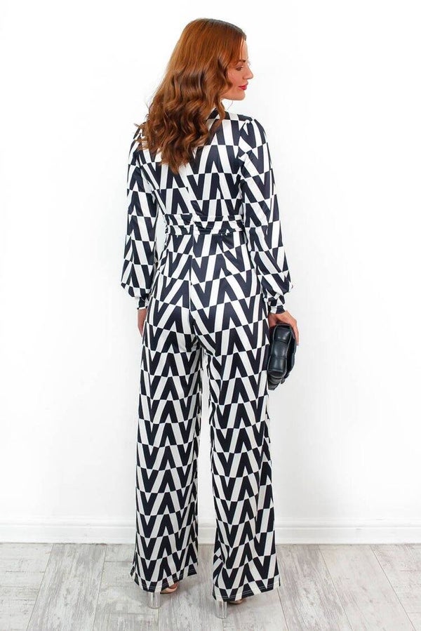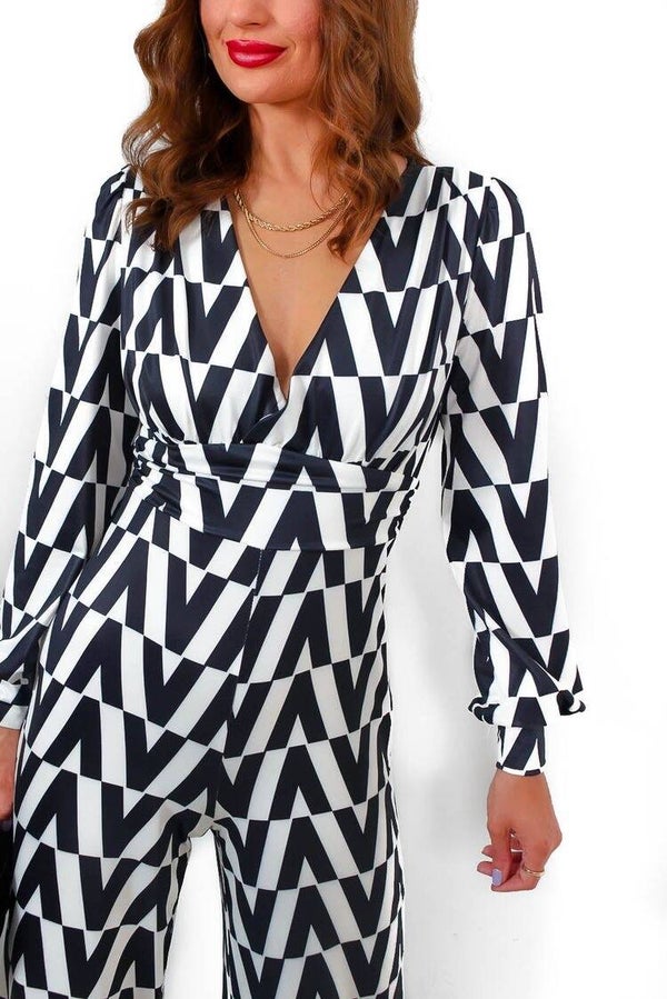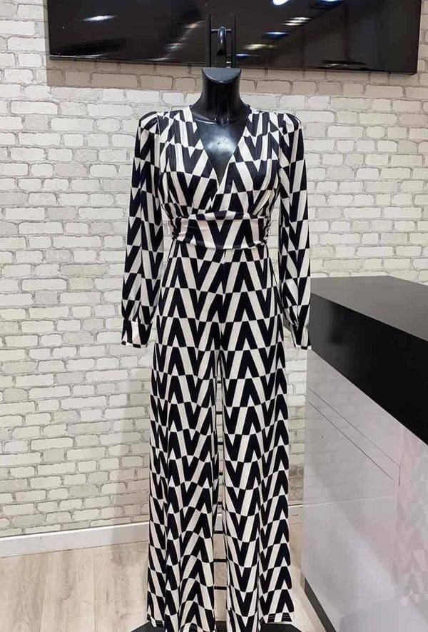 Super Mooie Jumpsuit met Opvallende zwarte Print – Deze jumpsuit valt op door zijn prachtige zwarteprint en elastische stof die comfortabel meebeweegt. Het subtiele pof detail op de mouwen maakt het een extra chique item.