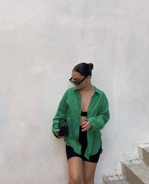 OMG! De Groene Blousjes Trend – Groene blousjes zijn overal, en wij hebben ze voor jou ingeslagen! Deze blouse is gemaakt van comfortabel, luchtig materiaal, ideaal voor zowel casual als chique looks. De blouse bevat twee knopen op de uiteinden van de mouwen en valt oversized voor een trendy uitstraling.